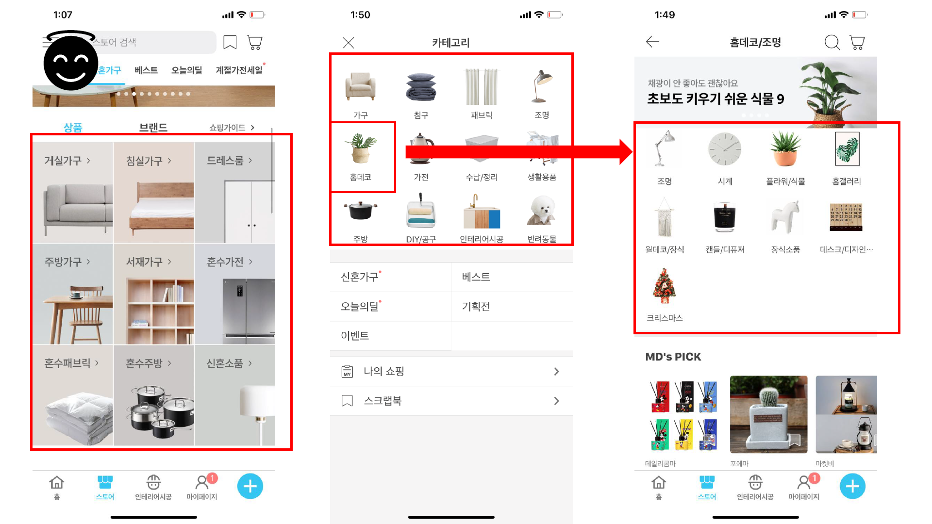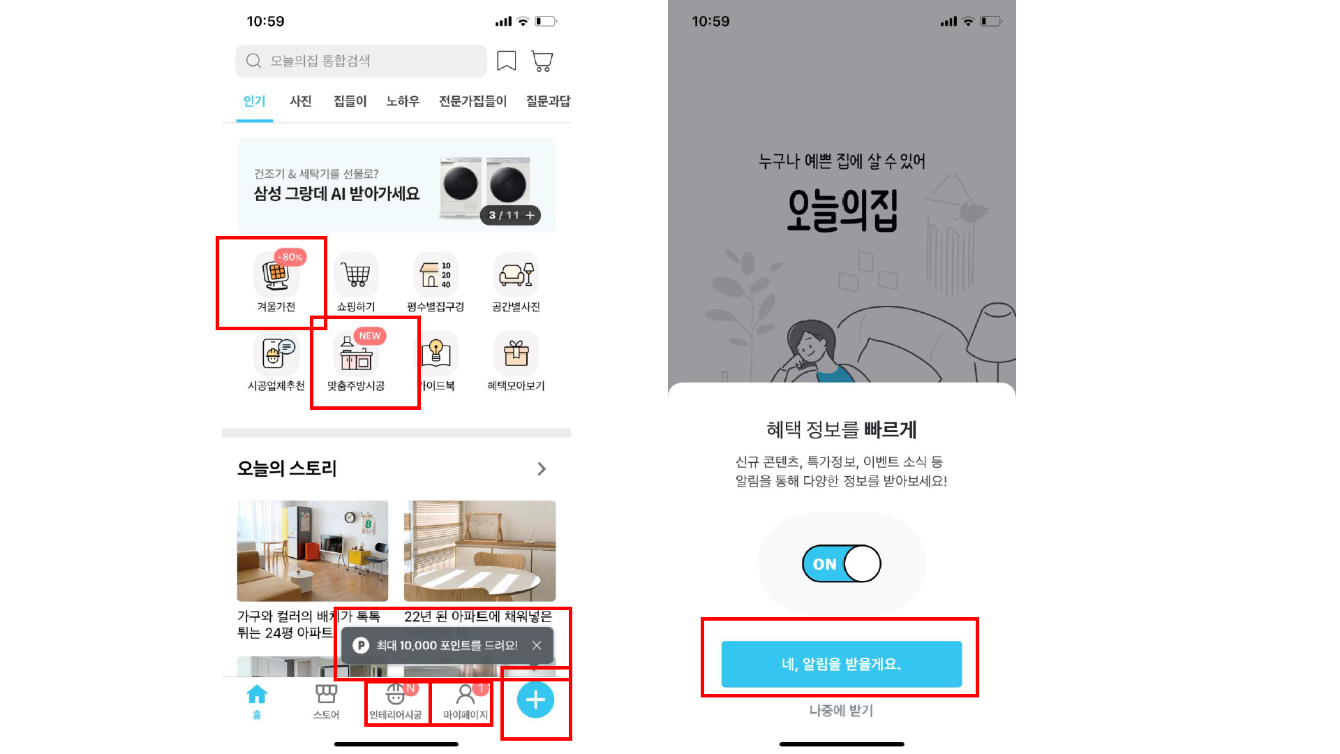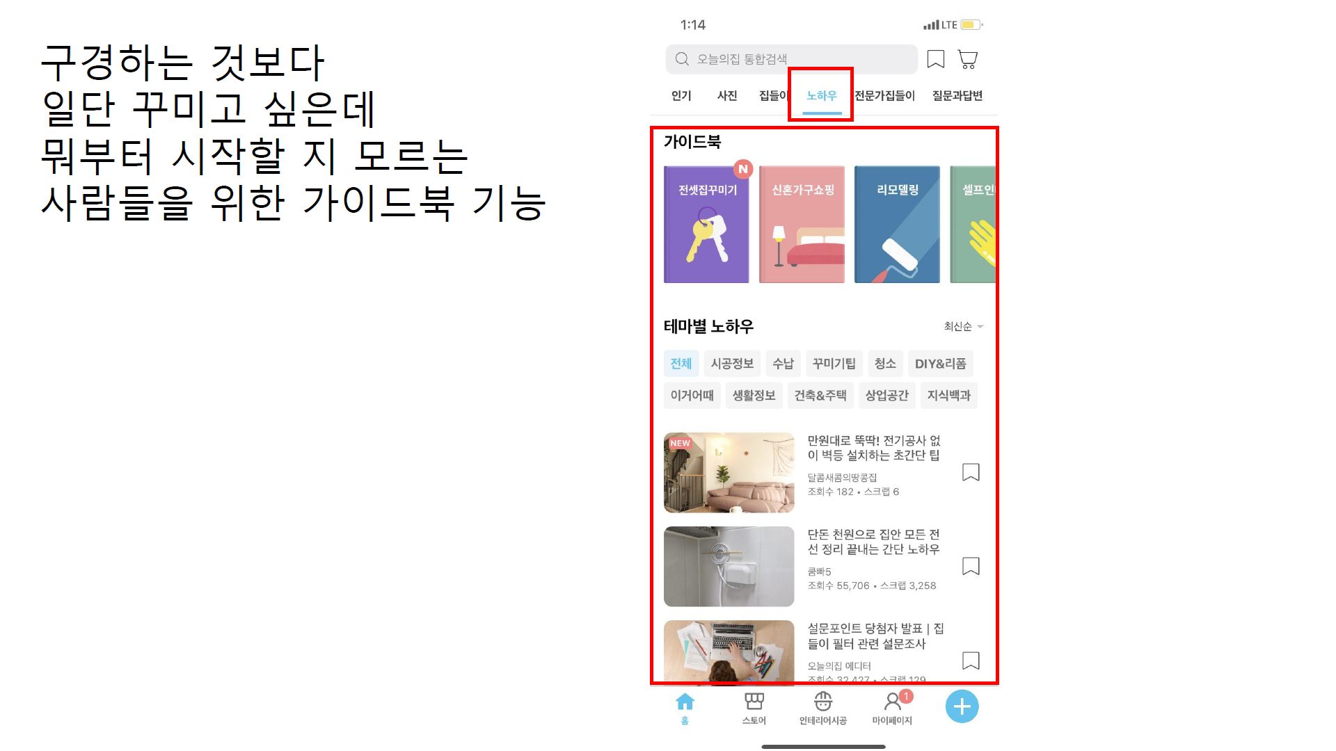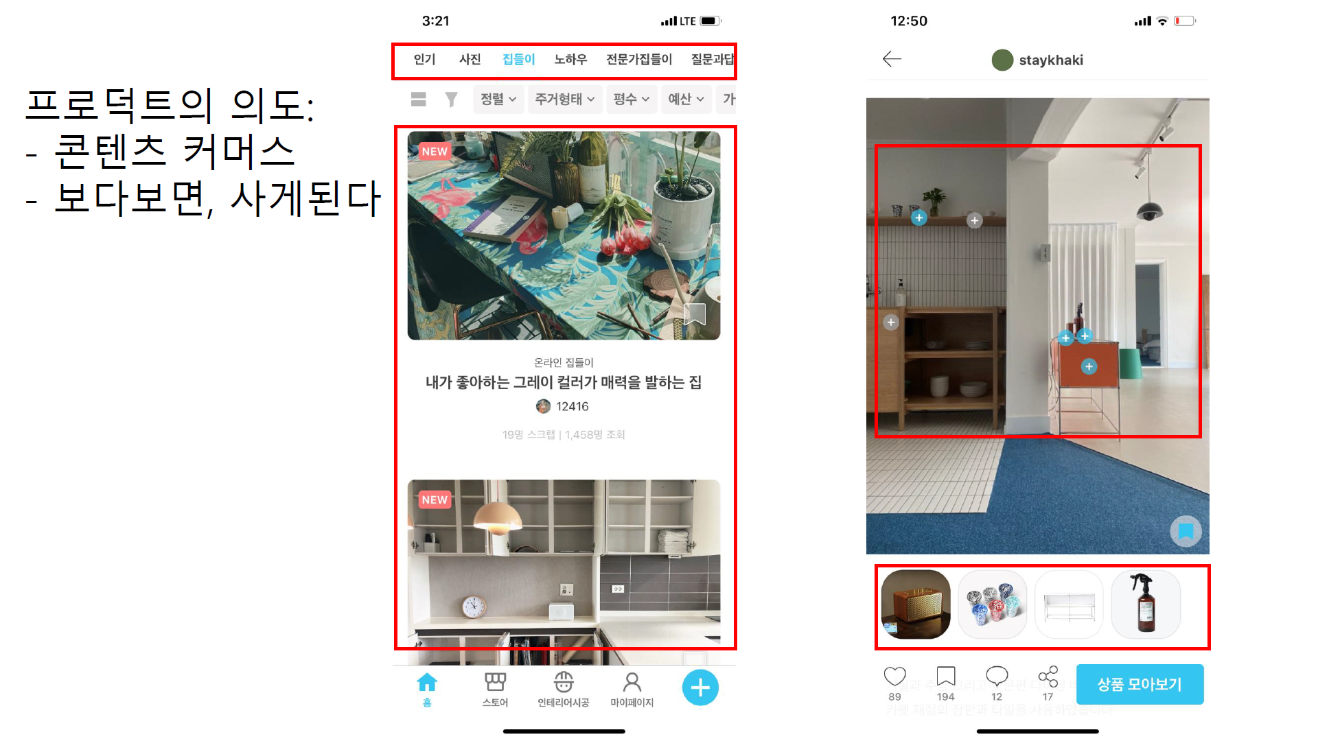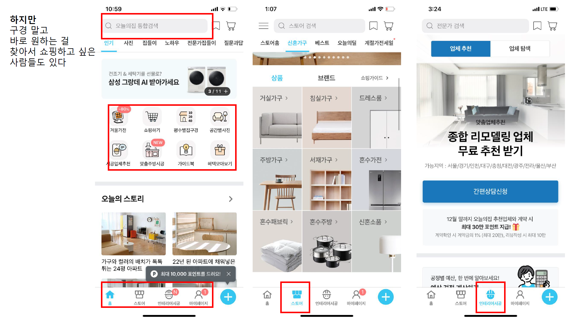 *오늘의 집은 주로 하늘색과 흰색 두 가지 색으로만 UI가 이루어져 있다. 이는 프로덕트의 콘텐츠 자체가 눈에 띄는 것이 중요하기 때문일 수도 있다.