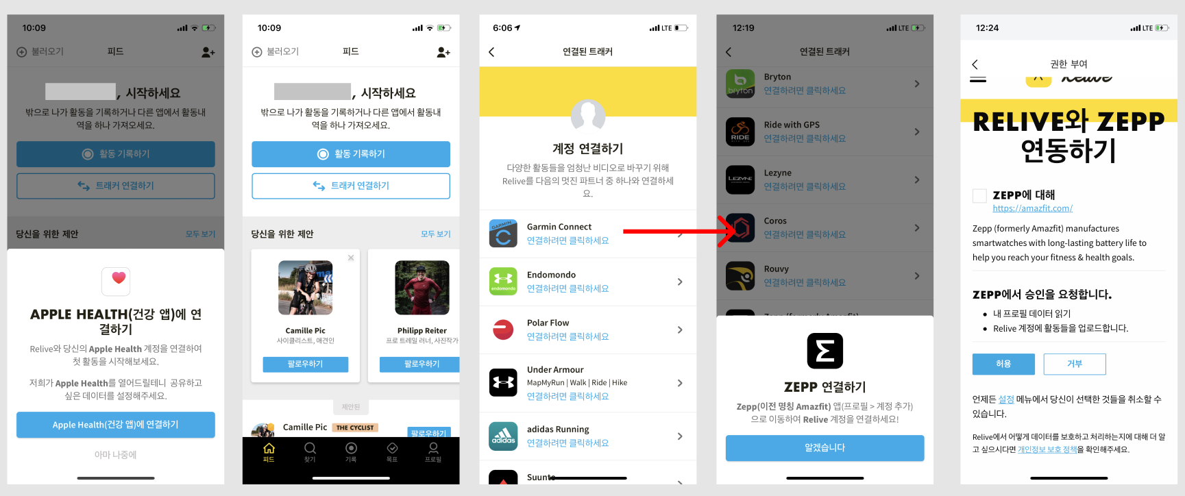 - 연결은 클릭클릭만 누르면 되어서 편한 것 같지만....내가 연결을 시도한 ZEPP 경우 ZEPP 어플에 직접 들어가서 설정을 바꾼 후에 Relive에서 연동해야 했다. 너무 귀찮았다.(Apple Health는 곧장 Apple Health의 설정창으로 넘어가서 바꿀 수 있었다). 아마 API의 제한인걸까? 어찌되었든 어플에 들어가서 설정을 바꾸고 다시 연동을 시도했다.
