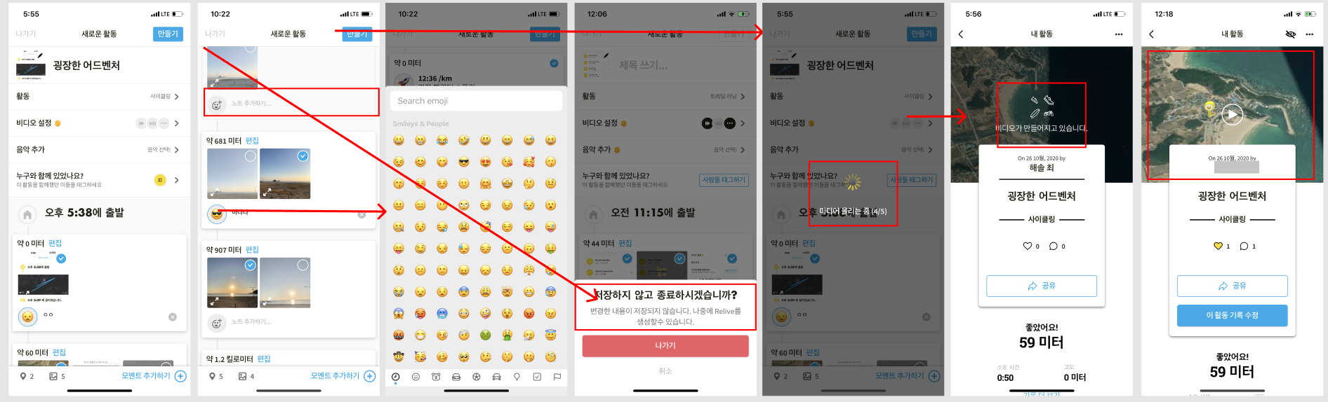 - 비디오 편집 과정에서 모멘트(사진)에 대한 편집이 가능하다. 비슷한 사진을 선택하고, 사진 밑에 이모지와 간단한 코멘트도 남길 수 있다. ==> 이처럼 사진을 편집하고 이모지와 코멘트를 남기는 기능은 활동을 생성할 때는 불가능하고 비디오를 생성할 때만 가능하다. 활동을 생성하는 단계에서도 이게 가능했으면 좋겠다. 아니면, 비디오를 만들게끔 유도하기 위한 Relive의 전략인걸까