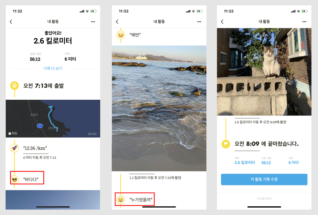 - 활동 카드가 영상으로 바뀐 것처럼 구체적인 활동 내역에도 이모지와 코멘트가 추가된다.