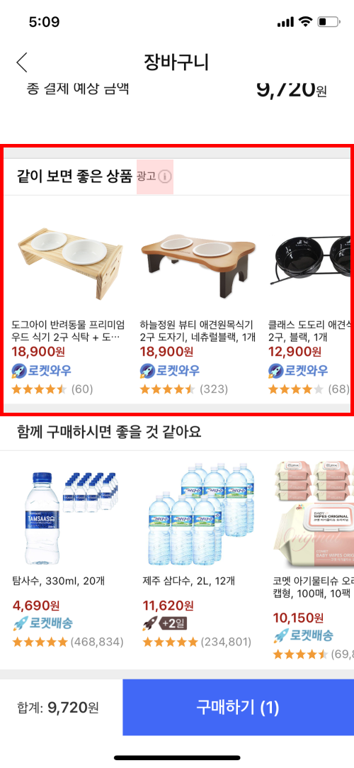 세 번째로, 덕분에 장바구니에서 "다른 고객이 함께 구매한 상품" 대신, "광고 상품"을 추천할 수 있게 되었다. (사실 이게 가장 큰 이유가 아니었을까 라고 혼자 추측해 본다.) 장바구니에는 추천 섹션이 보통 두 개 이상 있지 않다. 그 이상이면 클릭률도 떨어질 것이다. 하지만, 추천 섹션 하나를 다른 지면(장바구니 담는 과정)으로 옮긴 덕분에, 기존 추천 섹션을 줄일 필요도 없고, 광고 상품도 적절하게 위치시켜 광고비도 벌 수 있게 되었다. 일석이조!